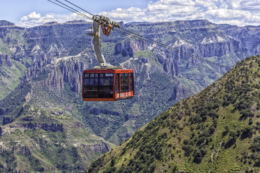 Inaugurado en septiembre de 2010, el teleférico de las Barrancas del Cobre recorre 3 kilómetros a 400 metros de altura, conectando dos puntos panorámicos del cañón en aproximadamente 8 minutos. Su capacidad de transporte es de hasta 500 personas por hora, lo que lo convierte en una obra de ingeniería reconocida a nivel nacional e internacional.